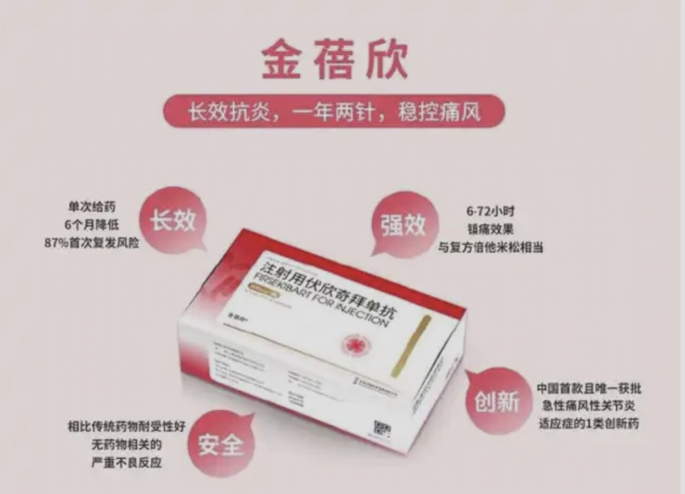 二、生物制剂金蓓欣(伏欣奇拜单抗),不降尿酸,但能让你告别痛苦